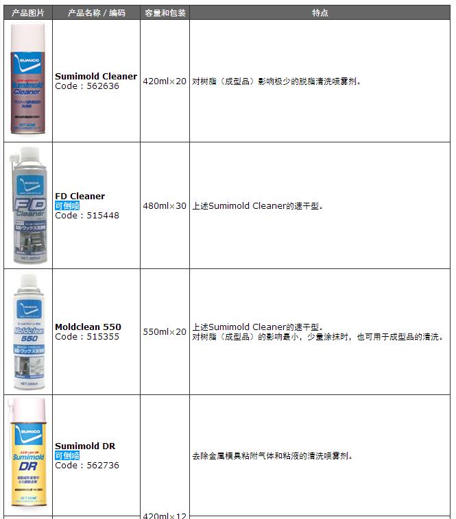 既有清洗劑可去除粘附在金屬模具上的防銹劑等殘留的油脂和蠟垢,又有清洗劑可去除化學反應氣體、粘液和頑固污垢。